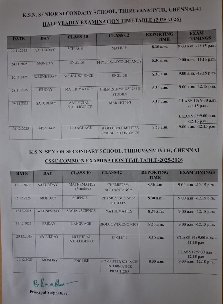 Class X -Half Yearly and CSSC exams -DEC 2025-26